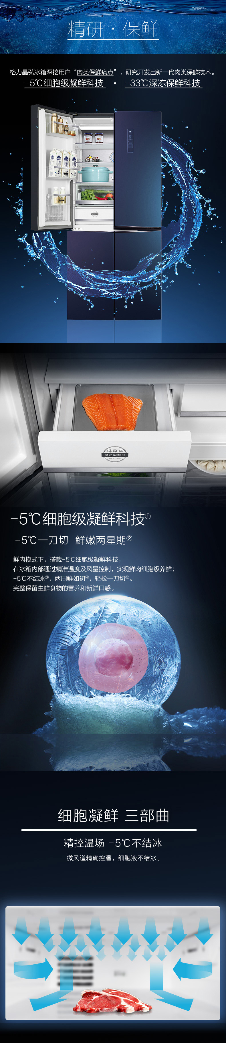 針對每種食材進行精細化分區,定制專屬保鮮艙,涵蓋肉類保鮮、果蔬保鮮、母乳儲存、干貨儲存以及除菌凈味五個維度,確保每一件食材的新鮮儲存