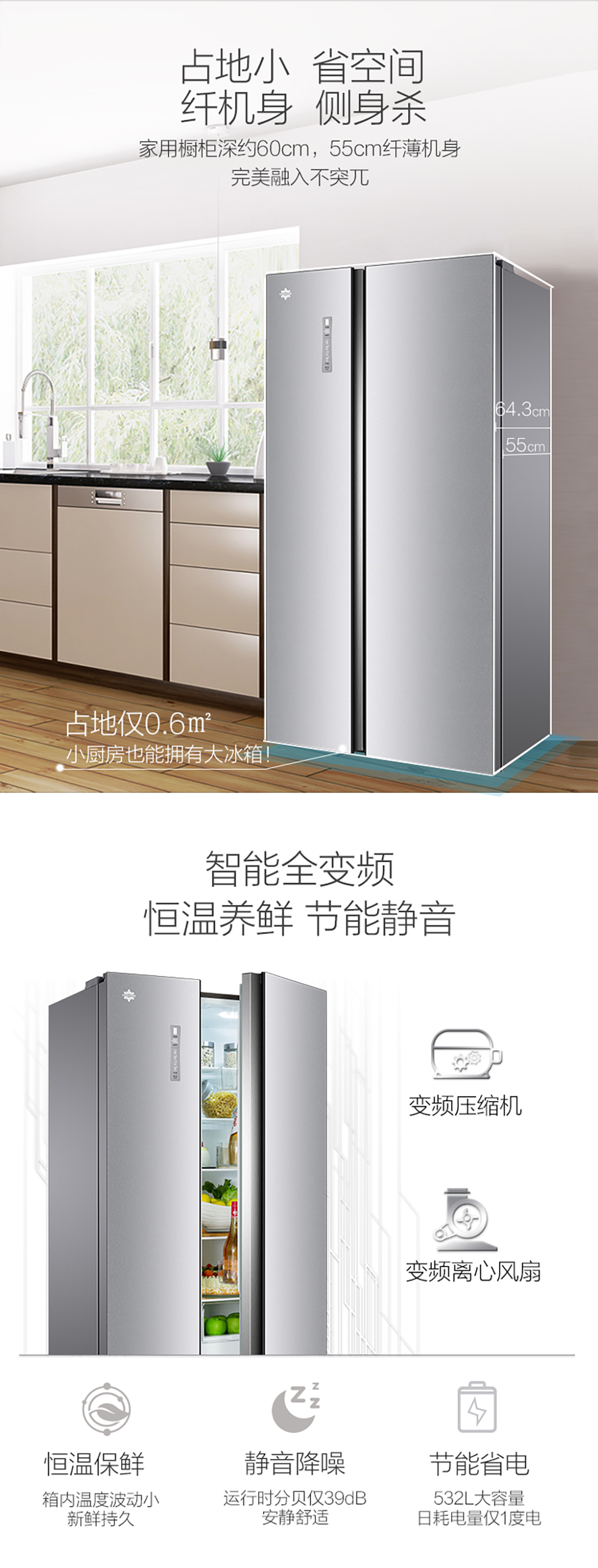 搭載-33℃深凍鎖鮮科技,肉汁飽滿更長久。采用離子長效抗菌凈味,抗菌率高達(dá)99.9%。3D沐風(fēng),風(fēng)冷養(yǎng)鮮,無需鑿霜。
